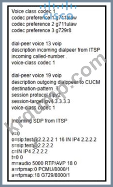 Cisco Unified Border Element를 통해 적절한 다이얼 피어를 일치시킨 후 Cisco UCM으로 전송되는 발신 m-라인 SDP는 무엇입니까?