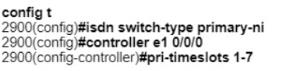 관리자는 사용 가능한 처음 7개의 타임슬롯으로 구성된 부분 PRI를 생성해야 합니다. 이 작업에 대해 ISDN E1 PRI를 구성하는 구성 스니펫은 무엇입니까?