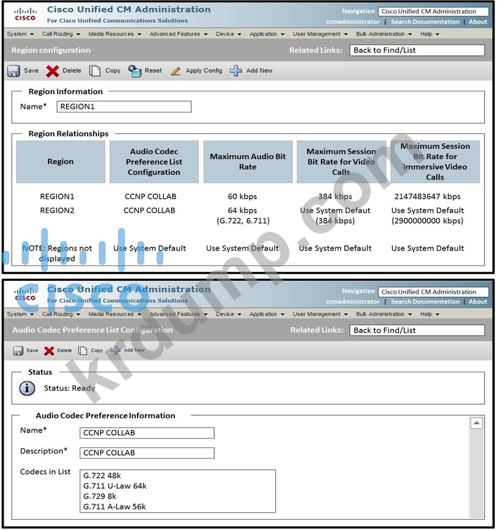 Region1의 Cisco 9971이 Region2의 Cisco 8945에서 회의를 시작하면 Region1