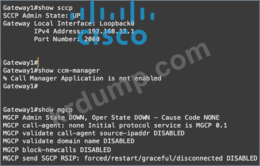 그림을 참조하십시오. 협업 엔지니어가 Cisco UCM 클러스터에 아날로그 게이트웨이를 추가합니다. 이 엔지니어는 게이트웨이 프로토콜로 SCCP 대신 MGCP를 선택합니다. 게이트웨이가 등록되도록 하는 두 가지 동작은 무엇입니까? (두 가지 선택)
