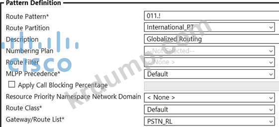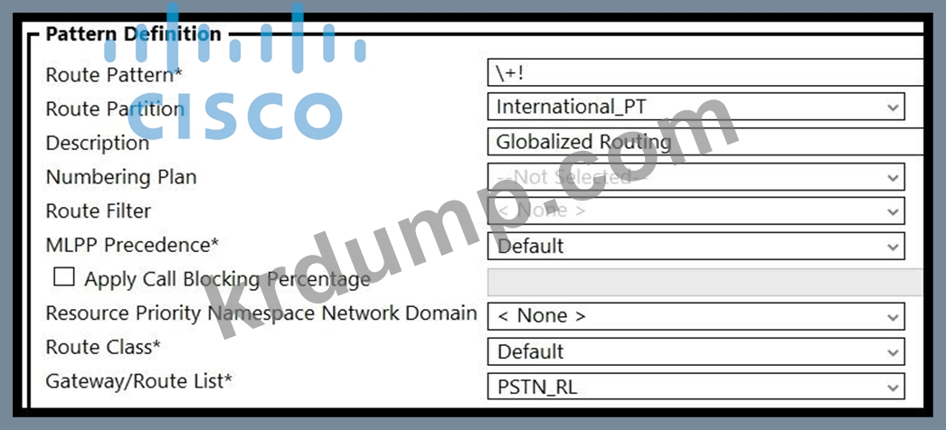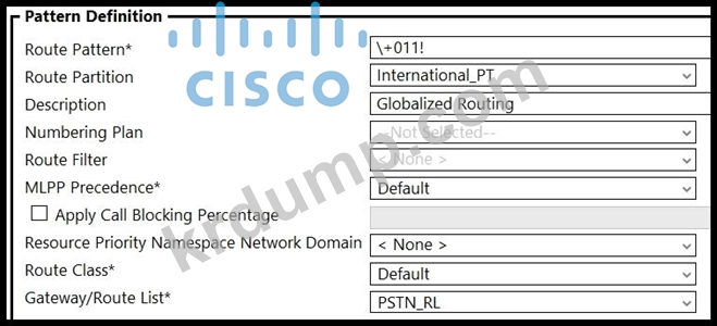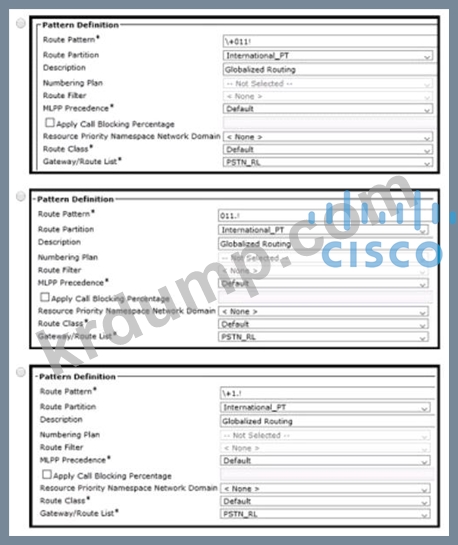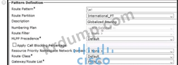 엔지니어는 모든 국가의 다이얼 플랜에 대해 모든 + E.164 국제 번호를 라우팅할 수 있는 경로 패턴을 구성해야 합니다. 이 작업을 수행하는 Cisco UCM 구성은 무엇입니까?