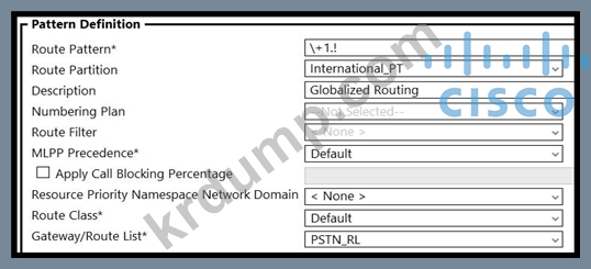 엔지니어는 모든 국가의 요금제에 맞게 모든 +E.164 국제 번호로 라우팅할 수 있는 경로 패턴을 구성해야 합니다. 이 작업을 수행하는 Cisco UCM 구성은 무엇입니까?