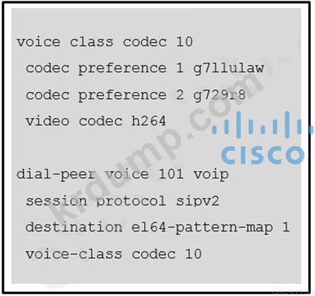 H.264를 사용합니다. 음성 코덱은 G.711을 사용하는 것이 좋습니다. 이 요구 사항을 충족하는 구성은 무엇입니까?