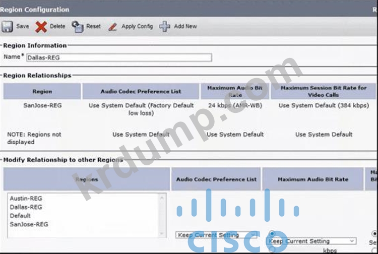 엔지니어는 "Dallas-REG"와 "Austin-REG" 사이에서 통화할 때 어떤 코덱을 선택해야 합니까?