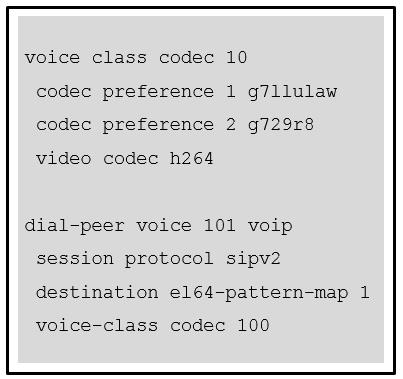 H.264를 사용합니다. 음성 코덱은 G.711을 사용하는 것이 좋습니다. 이 요구 사항을 충족하는 구성은 무엇입니까?