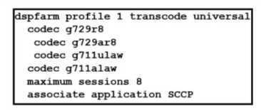 그림을 참조하세요. 이 DSPFarm으로 어떤 두 가지 코덱 순열을 트랜스코딩해야 할까요?
