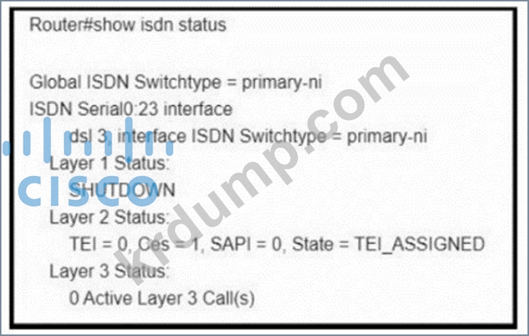 그림을 참조하십시오. 뉴욕에 있는 회사의 사용자는 전화를 걸 수 없습니다. 뉴욕 게이트웨이는 24개 채널을 지원하는 T1 ISDN PRI 카드로 구성되어 있습니다. 엔지니어는 "show isdn status" 명령을 실행하고 출력을 받습니다. 이 문제를 해결하기 위해 엔지니어는 어떤 조치를 취해야 합니까?