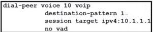 그림을 참조하세요. 엔지니어가 Cisco 게이트웨이에서 VoIP 다이얼 피어를 구성하고 있습니다. 어떤 코덱을 사용합니까?