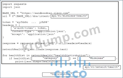 무선 네트워크 난로 정보를 검색하고 표시하려면 코드가 누락된 상자에 맨 아래에서 코드를 끌어다 놓습니다. 무선 네트워크 장치는 Cisco DNA Center에서 관리하고 있으며 REST API와 호환됩니다. 모든 옵션이 사용되는 것은 아닙니다.