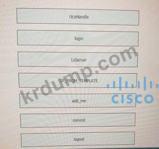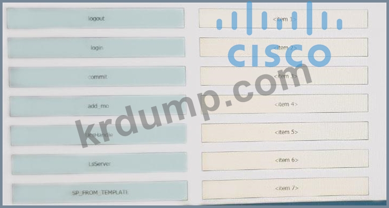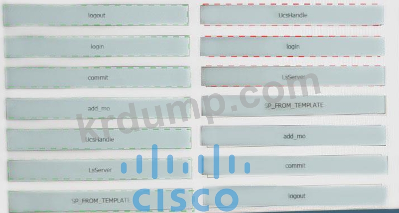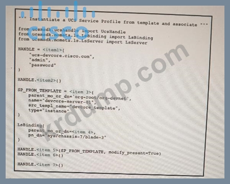 ''devcore-server-01'' 서비스 프로필 템플릿 ''device-template'' 에서 서비스 프로필 인스턴스를 섀시 7의 블레이드 3에 연결합니다. 왼쪽의 코드 조각을 오른쪽의 항목 번호로 끌어다 놓습니다. Python 전시회에서 누락된 섹션과 일치합니다.