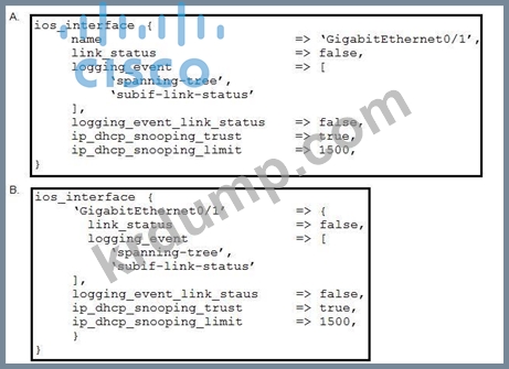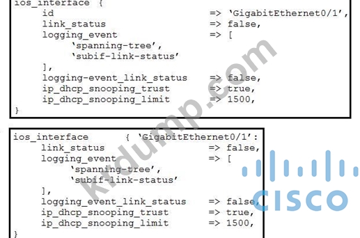 Cisco IOS 스위치에서 인터페이스 GigabitEthernet 0/1을 구성하려면 어떤 Puppet 매니페스트를 사용해야 합니까?