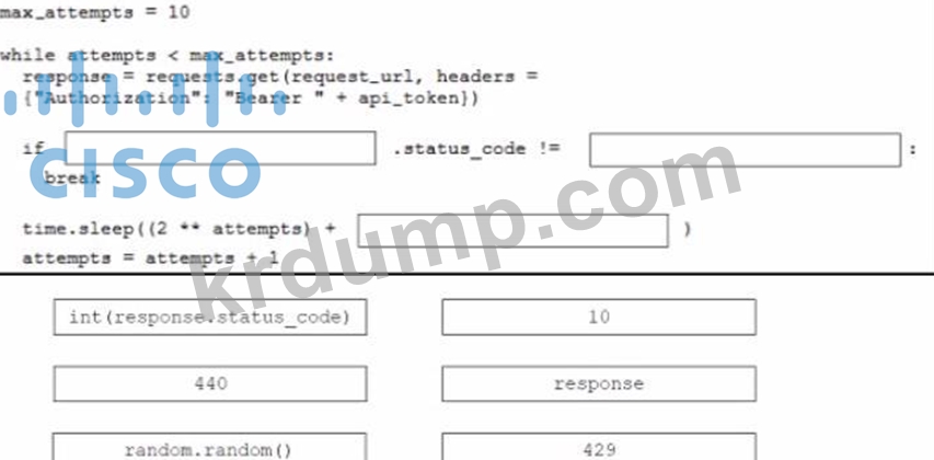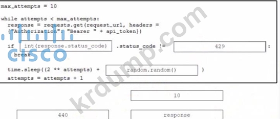 '너무 많은 요청' 응답이 수신되면 REST API 요청을 중지하기 위해 코드가 누락된 상자로 하단에서 코드를 끌어다 놓습니다. 모든 옵션이 사용되는 것은 아닙니다.