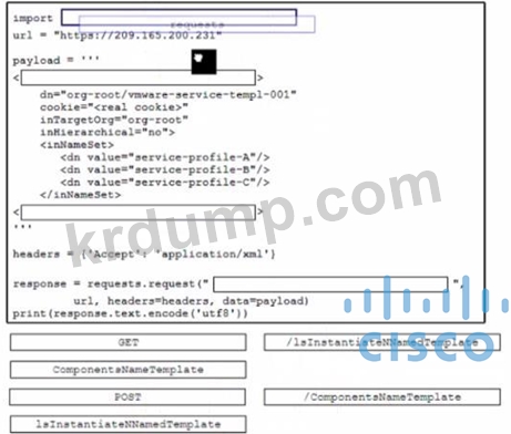 하단의 코드 스니펫을 코드가 누락된 상자로 드래그 앤 드롭하여 각각 다른 템플릿에서 3개의 Cisco UCS 서버를 배포합니다. 모든 옵션이 사용된 것은 아닙니다.