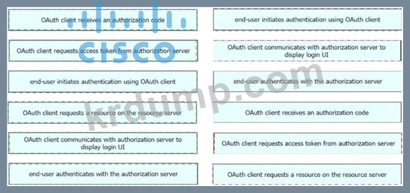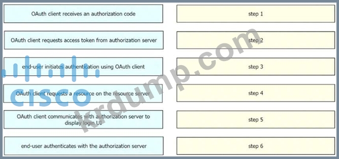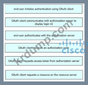 최종 사용자가 Authorization Code Grant1 흐름을 사용하여 OAuth2 보호 리소스에 액세스할 수 있도록 왼쪽 단계를 오른쪽 순서로 끌어다 놓습니다.