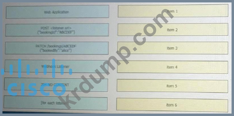 위의 설명을 참조하고 왼쪽 상단 모서리에 있는 탭을 클릭하면 예약 서비스에 대한 웹후크가 생성될 때 관련된 요청의 일반적인 흐름을 설명하는 다이어그램을 볼 수 있습니다. 예약이 웹 애플리케이션에서 업데이트될 때 관련된 요청의 전체 흐름을 설계하기 위해 시퀀스 다이어그램에서 누락된 섹션과 일치하는 오른쪽의 항목 번호로 요청을 왼쪽에서 끌어다 놓습니다.