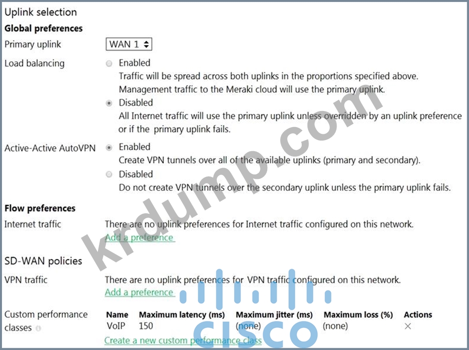 Meraki Insight가 애플리케이션 성능 점수를 계산하는 데 사용하는 두 가지 기본 측정항목은 무엇입니까? (2개를 선택하세요.)