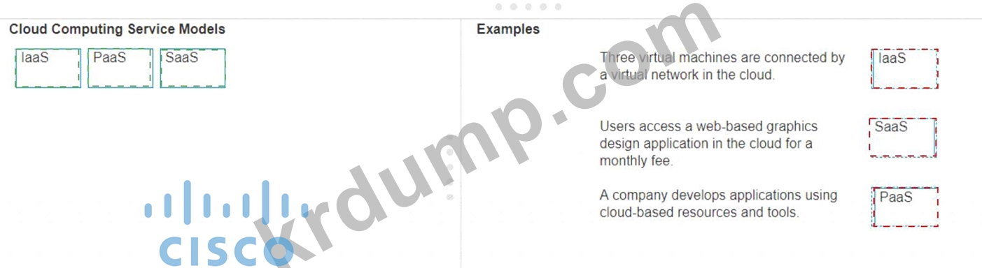 왼쪽 목록에서 각 클라우드 컴퓨팅 서비스 모델을 오른쪽의 올바른 예로 옮기세요. 참고: 정답을 맞힐 때마다 부분적인 점수를 받습니다.