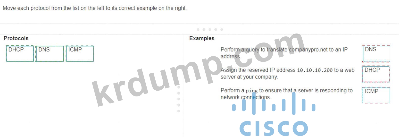 왼쪽 목록에서 각 프로토콜을 오른쪽의 올바른 예로 옮겨보세요.