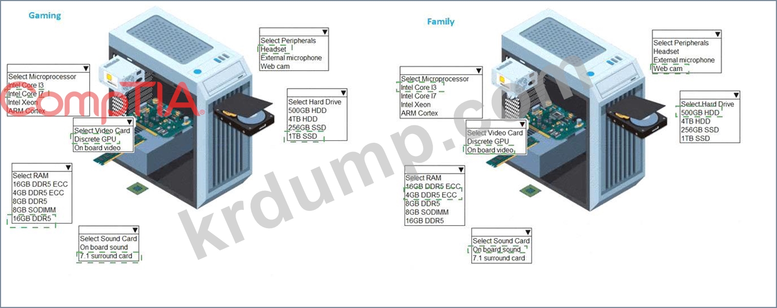 고객께서 새 데스크톱 두 대를 구매하시겠다고 연락해 오셨습니다. 첫 번째 데스크톱은 게이밍 워크스테이션입니다. 고객 요구 사항은 다음과 같습니다.