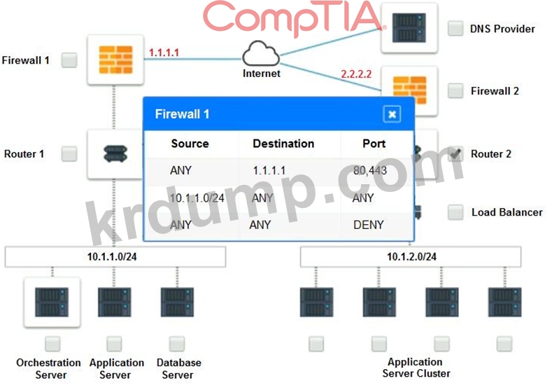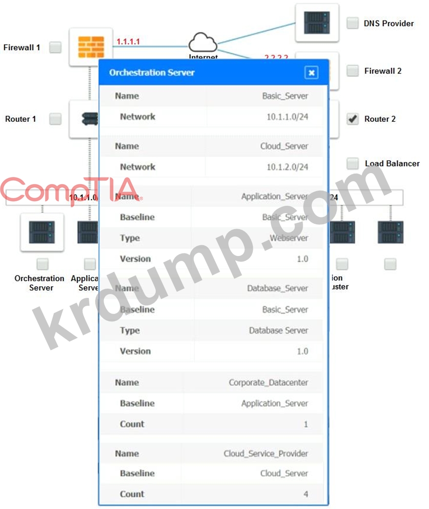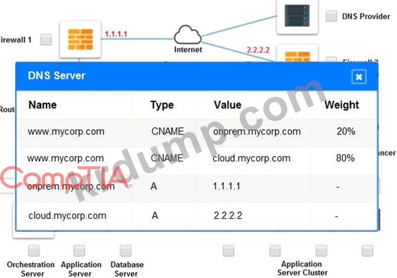 애플리케이션 로드의 대부분은 정상적인 조건에서 애플리케이션 서버에서 발생합니다. 이러한 이유로 회사는 공통 소프트웨어 및 네트워크 구성을 설치 및 구성하는 온프레미스 오케스트레이션 엔진을 사용하여 추가 애플리케이션 서버를 상용 클라우드 제공업체에 배포하기로 결정했습니다.