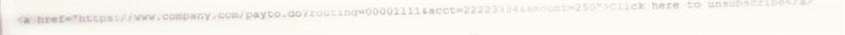 법의학 수사관이 회사 웹사이트에서 보고된 다수의 무단 지불을 조사하고 있습니다. 일부 비정상적인 로그 항목은 사용자가 원치 않는 메일링 리스트에 대한 이메일을 받았고 구독 취소를 시도하기 위해 링크를 클릭했음을 보여줍니다. 사용자 중 한 명이 피싱 팀에 이메일을 보고했으며 전달된 이메일은 링크를 다음과 같이 밝혔습니다.