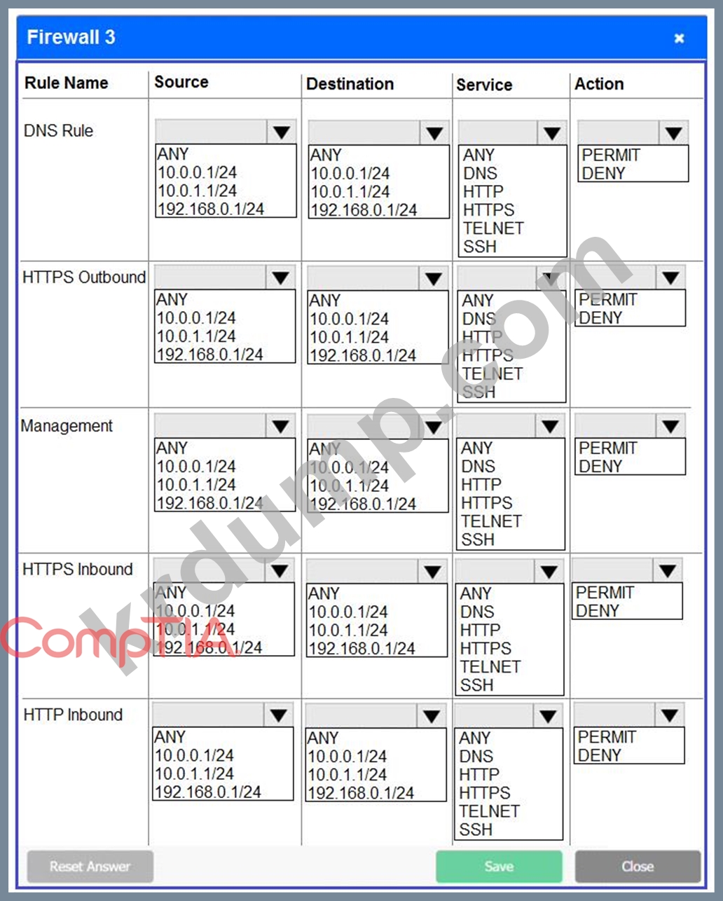 각 방화벽을 클릭하여 다음을 수행하십시오.