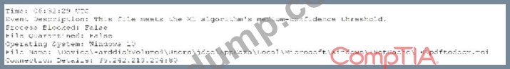 최종 사용자는 컴퓨터가 몇 주 동안 정상보다 느리게 작동한다고 보고합니다. 조사 중에 분석가는 시스템 3을 확인하여 사용자에게 이메일 주소와 10자리 숫자를 IP 주소로 하루에 한 번 보냅니다. 사용자 컴퓨터와 관련된 유일한 재전송 로그 항목은 다음과 같습니다.