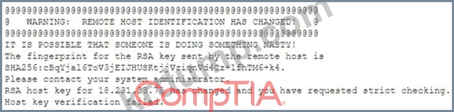 한 연구원은 지난 10개월 동안 대규모 데이터 세트를 분석해 왔습니다. 연구원은 다른 기관의 동료와 협력하며 일반적으로 SSH를 통해 연결하여 추가 데이터를 검색합니다. 역사적으로 이 설정은 문제 없이 작동했지만 연구원은 최근 다음 메시지를 받기 시작했습니다.