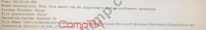 최종 사용자는 컴퓨터가 몇 주 동안 평소보다 느리게 작동한다고 보고합니다. 조사하는 동안 분석가는 시스템이 사용자의 이메일 주소와 10자리 숫자를 하루에 한 번 IP 주소로 보내고 있음을 확인합니다. 사용자의 컴퓨터에 관한 유일한 최근 로그 항목은 다음과 같습니다.