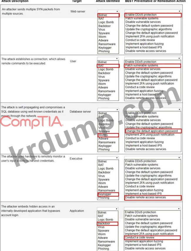 보안 관리자가 서버가 다양한 공격에 취약한지 여부를 확인하려고 합니다. 도구를 사용한 후 관리자는 다음과 같은 결과를 얻습니다.