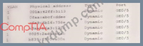 보안 관리자는 다음 출력을 보여주는 네트워크 스위치 테이블을 확인합니다.