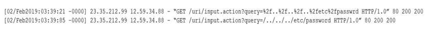 보안 분석가는 웹 로그를 검토하는 동안 다음 로그 출력을 확인합니다.