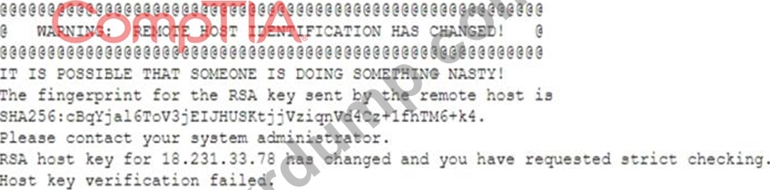 한 연구원은 지난 10개월 동안 대규모 데이터 세트를 분석해 왔습니다. 연구원은 다른 기관의 동료와 협력하며 일반적으로 SSH를 통해 연결하여 추가 데이터를 검색합니다. 역사적으로 이 설정은 문제 없이 작동했지만 연구원은 최근 다음 메시지를 받기 시작했습니다.