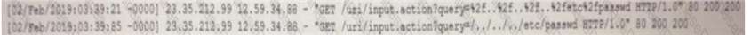 보안 분석가는 웹 로그를 검토하는 동안 다음 로그 출력을 확인합니다.