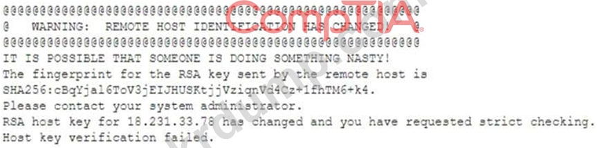 한 연구원은 지난 10개월 동안 대규모 데이터 세트를 분석해 왔습니다. 연구원은 다른 기관의 동료와 협력하며 일반적으로 SSH를 통해 연결하여 추가 데이터를 검색합니다. 역사적으로 이 설정은 문제 없이 작동했지만 연구원은 최근 다음 메시지를 받기 시작했습니다.