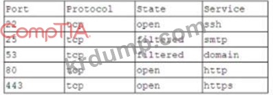 한 회사가 암호화된 웹 브라우징 프로토콜과 암호화되지 않은 웹 브라우징 프로토콜을 모두 사용하는 웹 서버를 인터넷에 구축하고 있습니다. 보안 엔지니어가 인터넷에서 해당 서버에 대한 포트 스캔을 실행하여 다음과 같은 결과를 확인했습니다.