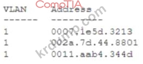 2계층 주소 테이블에는 위와 비슷한 항목이 수백 개 있습니다. 다음 중 어떤 공격이 발생했을 가능성이 가장 높습니까?