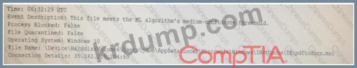 최종 사용자가 몇 주 동안 컴퓨터가 평소보다 느리게 작동한다고 보고했습니다. 조사 과정에서 분석가는 시스템이 사용자의 이메일 주소와 10자리 숫자를 IP 주소로 하루에 한 번씩 전송하고 있음을 확인했습니다. 사용자 컴퓨터와 관련된 최근 로그 항목은 다음과 같습니다.