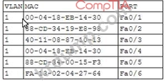 엔지니어는 show mac address-table 명령을 입력하고 다음 출력을 검토합니다.