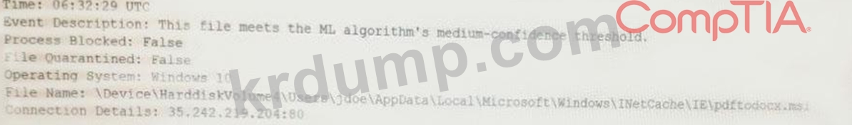 최종 사용자가 몇 주 동안 컴퓨터가 평소보다 느리게 작동한다고 보고했습니다. 조사 과정에서 분석가는 시스템이 사용자의 이메일 주소와 10자리 숫자를 IP 주소로 하루에 한 번씩 전송하고 있음을 확인했습니다. 사용자 컴퓨터와 관련된 최근 로그 항목은 다음과 같습니다.