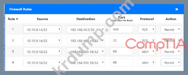 보안 관리자는 기본적으로 암묵적인 거부 정책을 구현하는 새로운 방화벽을 설치했습니다.