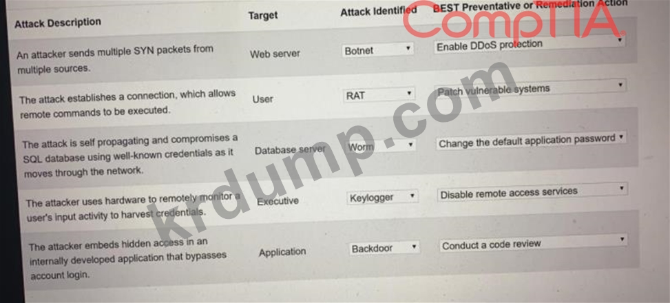 각 드롭다운 목록에서 적절한 공격과 해결책을 선택하여 해당 공격에 해결책이라는 라벨을 붙입니다.