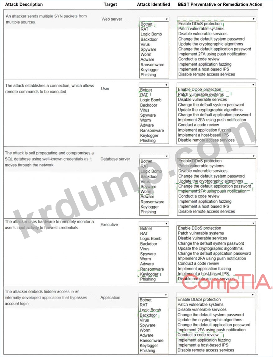 모든 공격과 시정 조치가 사용되는 것은 아닙니다.