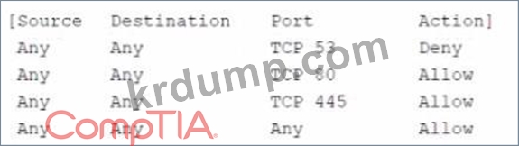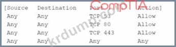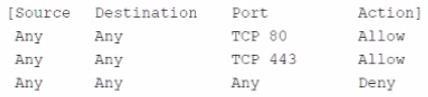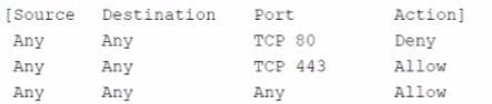 최근 보안 사고 이후, 보안 분석가는 웹 서버의 방화벽 정책에 불필요한 포트가 열려 있음을 발견했습니다. 다음 중 웹 서버에 가장 안전한 방화벽 정책은 무엇일까요?