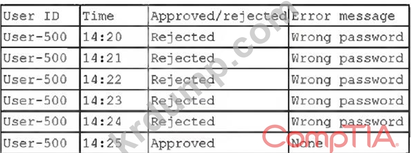 보안 분석가는 사용자가 휴가 중이었을 때 데이터베이스 항목에 사용자 이름이 나타나는 것을 발견했습니다. 보안 분석가는 데이터베이스에서 사용 중인 인증 서버의 다음 로그를 검토합니다.