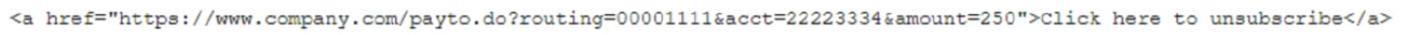 00mpany 웹사이트. 일부 비정상적인 로그 항목에 따르면 사용자가 원치 않는 메일링 리스트 이메일을 받고 링크를 클릭하여 구독을 취소하려 했던 것으로 나타났습니다. 사용자 중 한 명이 피싱팀에 이메일을 신고했고, 전달된 이메일에는 다음과 같은 링크가 포함되어 있었습니다.