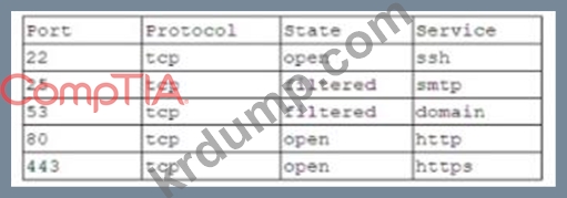 한 회사가 암호화된 웹 브라우징 프로토콜과 암호화되지 않은 웹 브라우징 프로토콜을 모두 사용하는 웹 서버를 인터넷에 구축하고 있습니다. 보안 엔지니어가 인터넷에서 해당 서버에 대한 포트 스캔을 실행하여 다음과 같은 결과를 확인했습니다.
