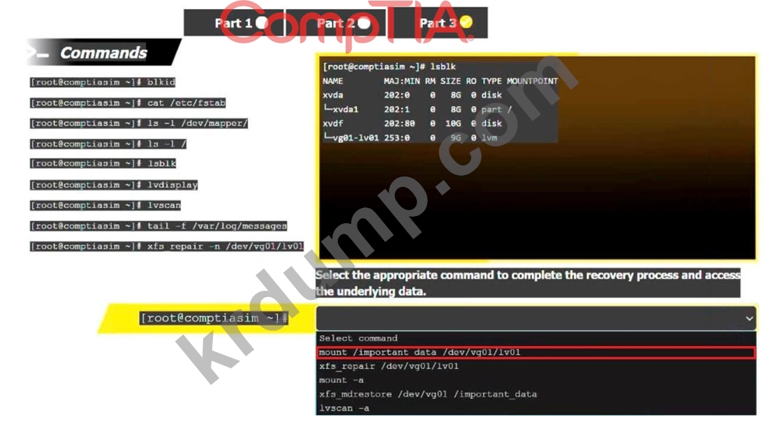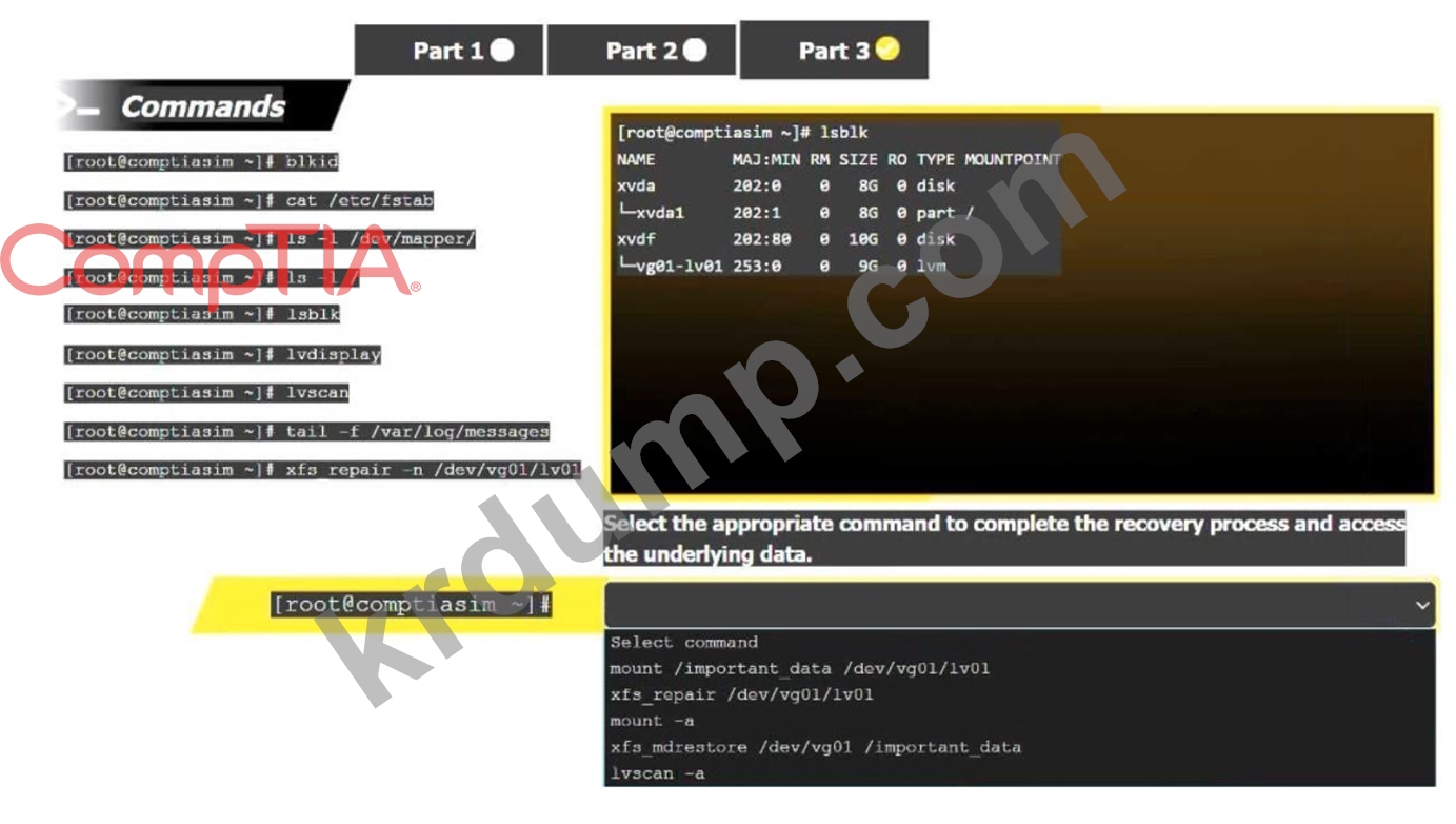 출력을 검토하고 적절한 명령을 선택하여 복구 프로세스를 완료하고 기본 데이터에 액세스합니다.