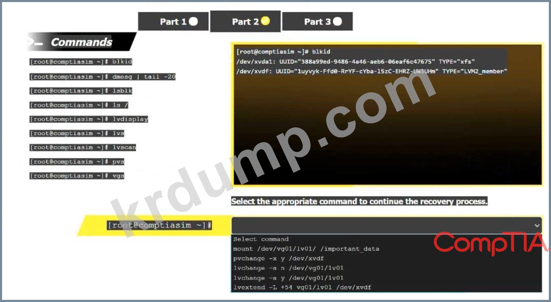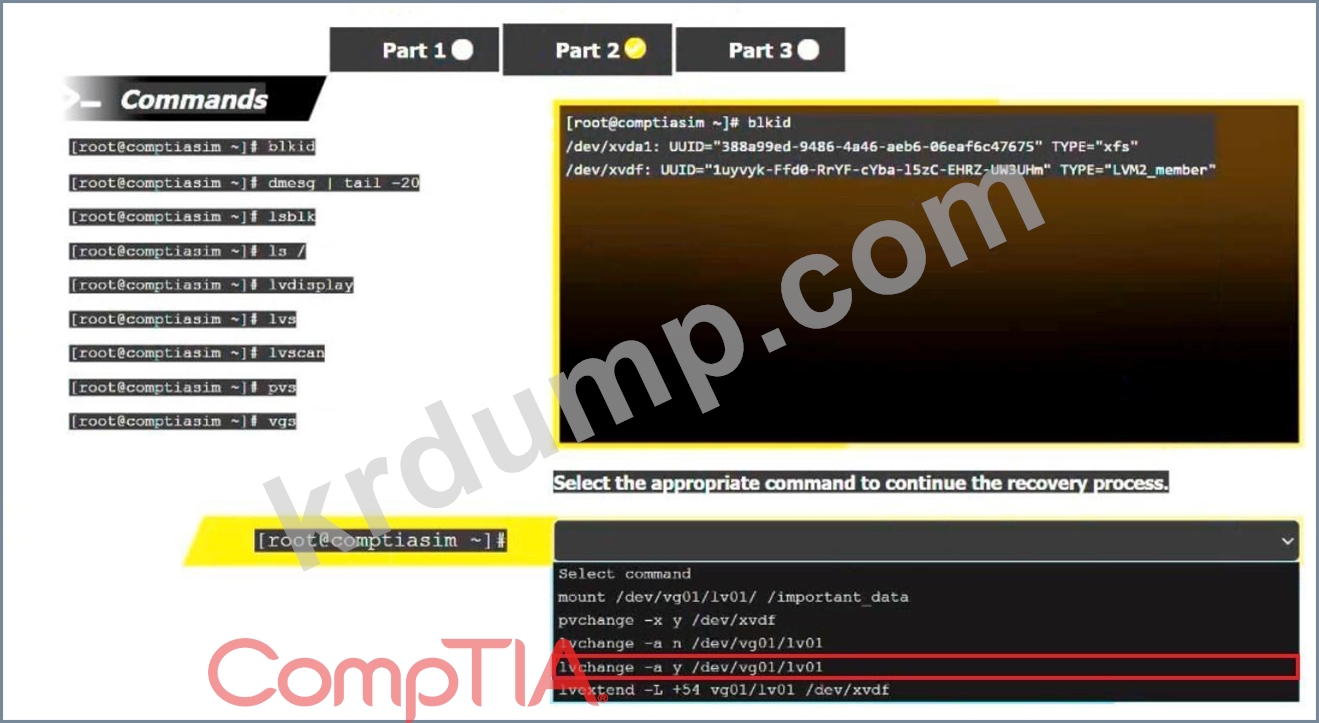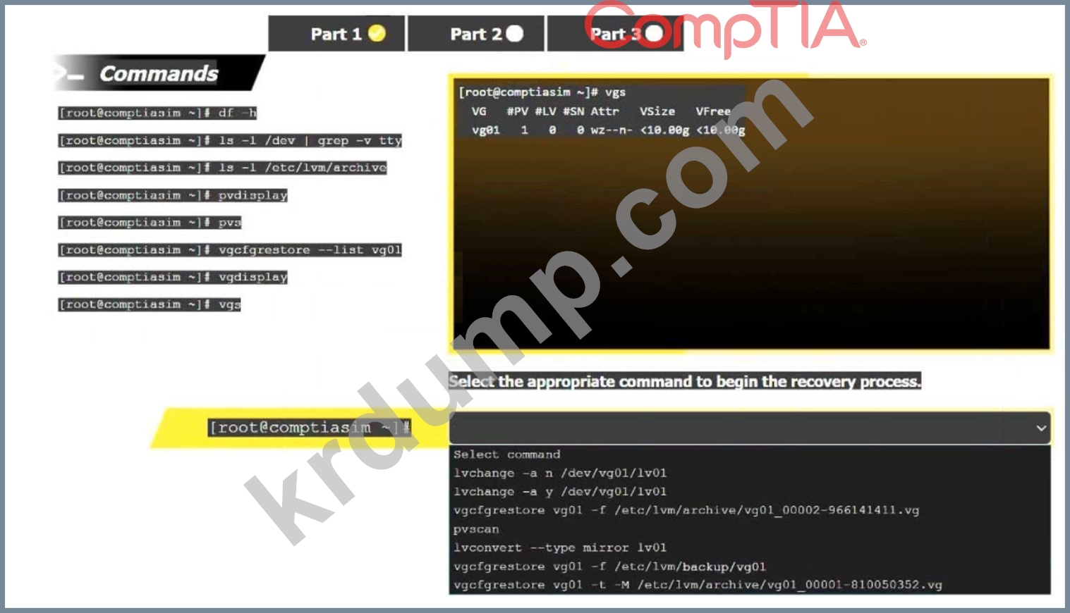 출력을 검토하고 적절한 명령을 선택하여 복구 프로세스를 계속하세요.