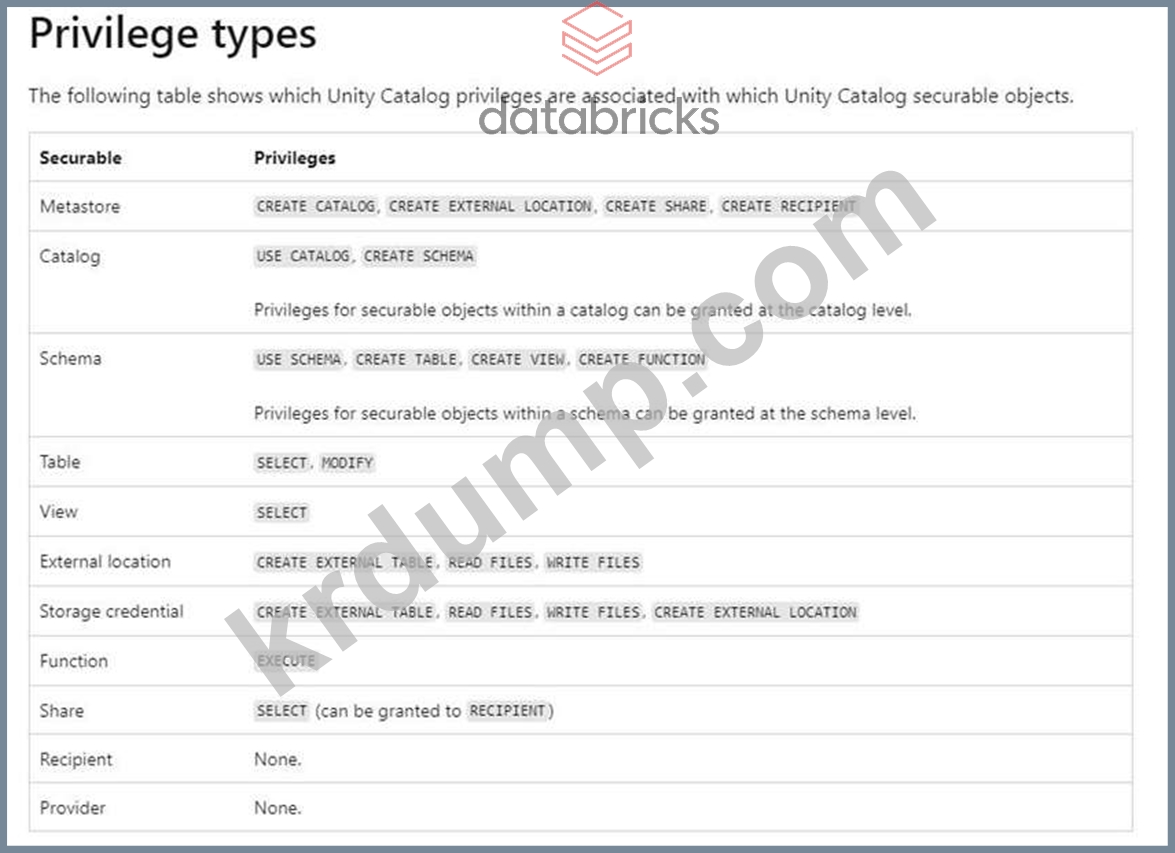 다음 중 Unity 카탈로그의 권한이 아닌 것은 무엇입니까?